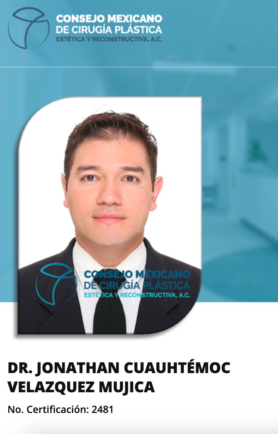 Certificado por Consejo Mexicano de Cirugía Plástica Estética y Reconstructiva con el número 2481.